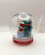 Please note: this snow globe display piece does not contain liquid as a traditional snow globe does.