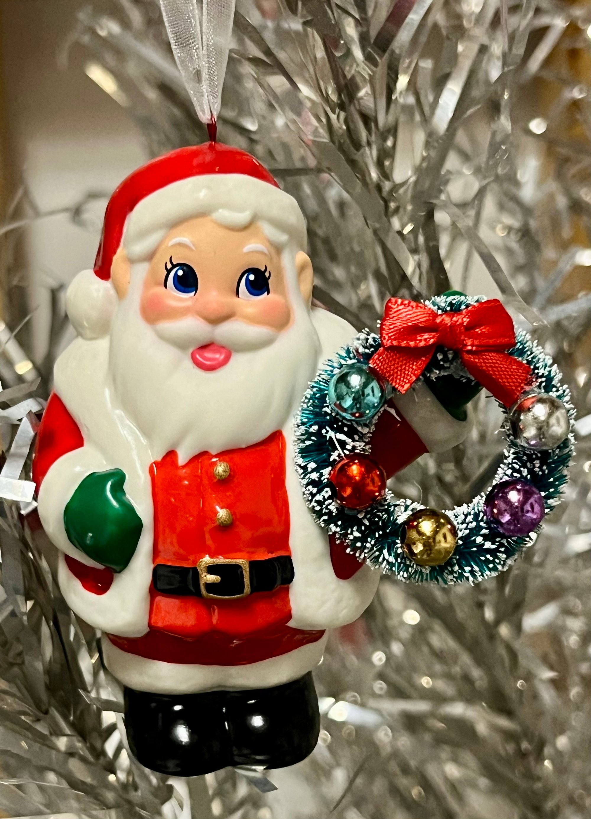 Retro Santa with Wreath Christmas Tree Ornament
