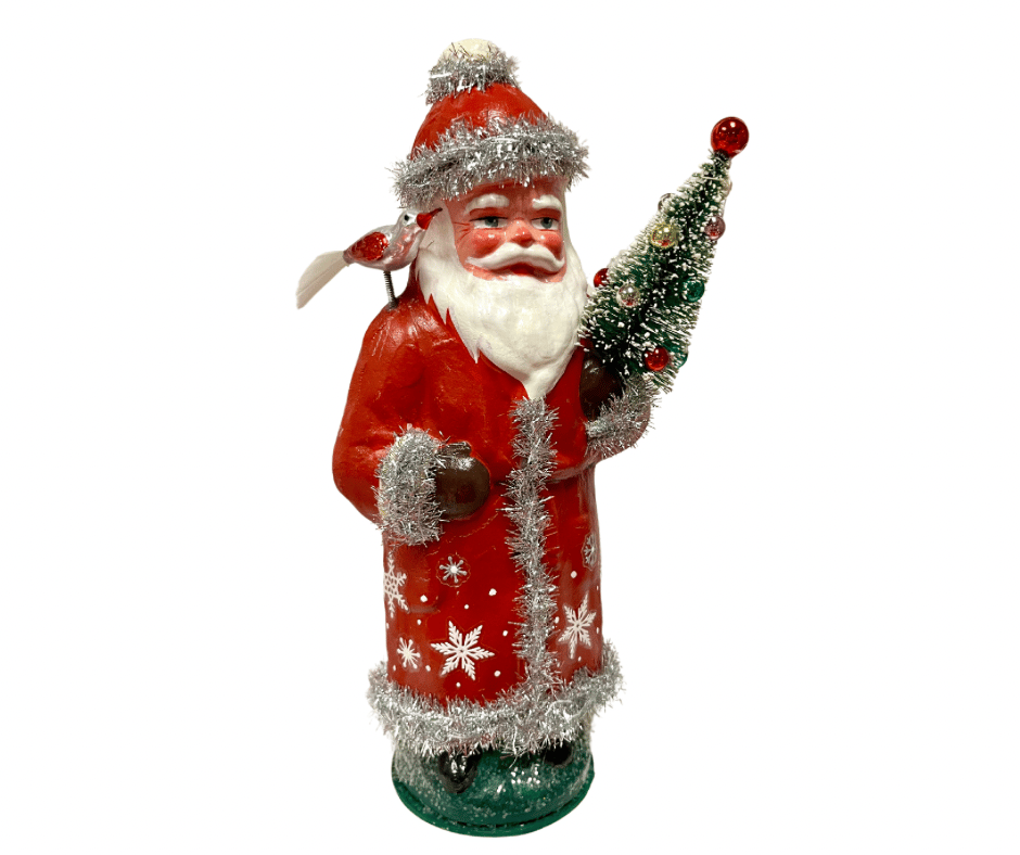 Vintage tabletop Santa adorned with a red bird and bottle brush tree. This one of a kind piece created by Joanne Wright has tinsel attachments too! It comes with a certificate of authenticity and is signed by the artist.